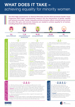 The OSCE High Commissioner on National Minorities and the OSCE Secretariat Gender Issues Programme WIN Project commissioned research into the intersections of gender equality and national minorities. The factsheet highlights key findings and provides recommendations to OSCE participating States to promote equal opportunities for minority women.