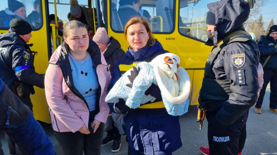 Kateryna Haidamachuk (on the right) during the evacuation from Kyiv oblast, Spring 2022.