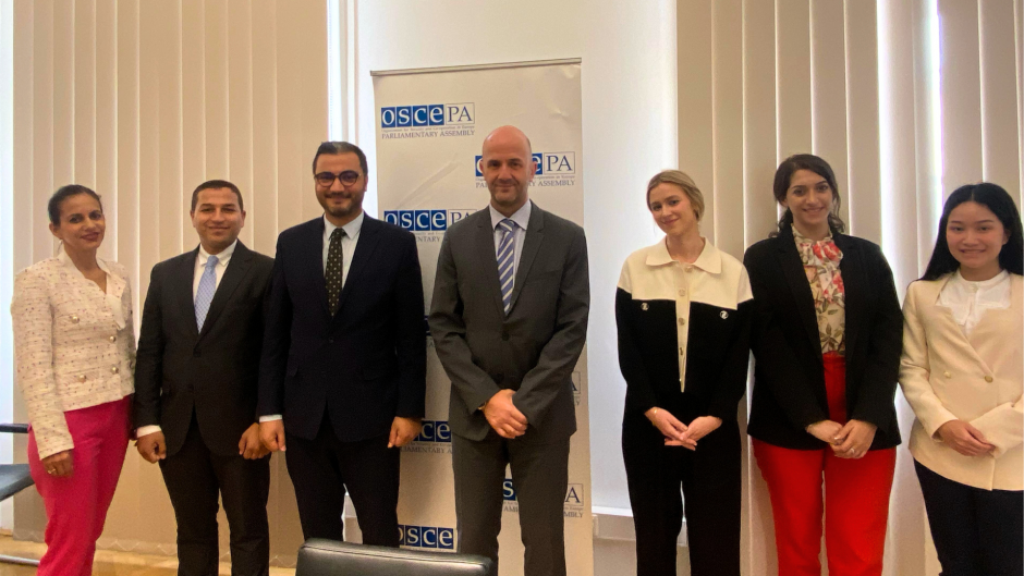 Special Representative Ambassador Miodrag Pančeski welcoming participants of the 2023 OSCE Study Visit for Partners for Co-operation countries at the OSCE Parliamentary Assembly Vienna Office, Vienna, 20 September 2023.