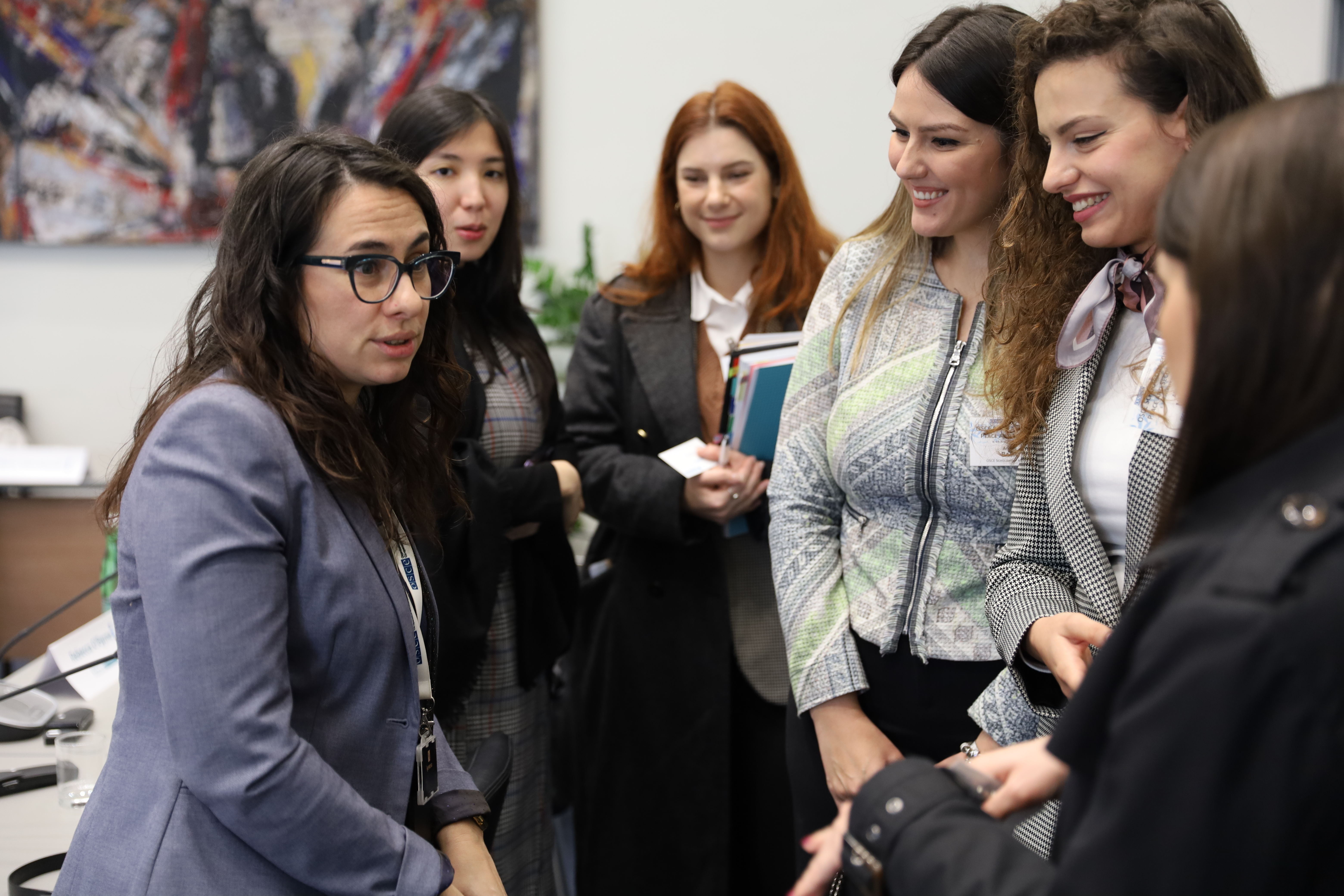 Participants of the OSCE Scholarship for Peace and Security engaging in a discussion with the representative of the OSCE Conflict Prevention Centre, Vienna, 8 November 2023