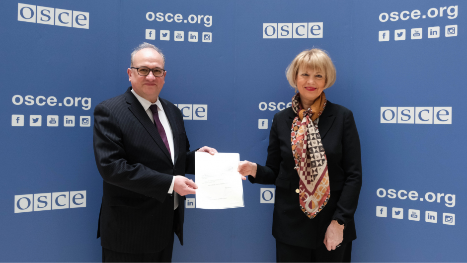 H.E. Pajo Avirovikj, Ambassador and Permanent Representative of North Macedonia to the OSCE, with the OSCE Secretary General Helga Maria Schmid, Vienna, 24 January 2024.