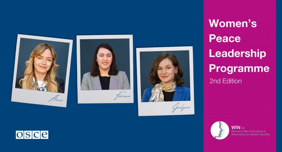 Anna Popsui, Farima Nawabi and Galyna Kotliuk are three of the 16 mentees from around the OSCE region and Afghanistan, participating in the OSCE Women’s Peace Leadership Programme 2023-2024, an initiative of the OSCE Secretary General Helga Maria Schmid. The Programme aims to strengthen the ability of women to meaningfully engage and influence peace processes at all levels. It is a part of the OSCE’s flagship project WIN for Women and Men, which covers the Networking platform for Women Leaders including Peacebuilders and Mediators. The WIN project works with OSCE-supported networks and gives rise to new networks, fostering women’s participation and leadership, as well as broader men’s engagement in achieving gender equality.