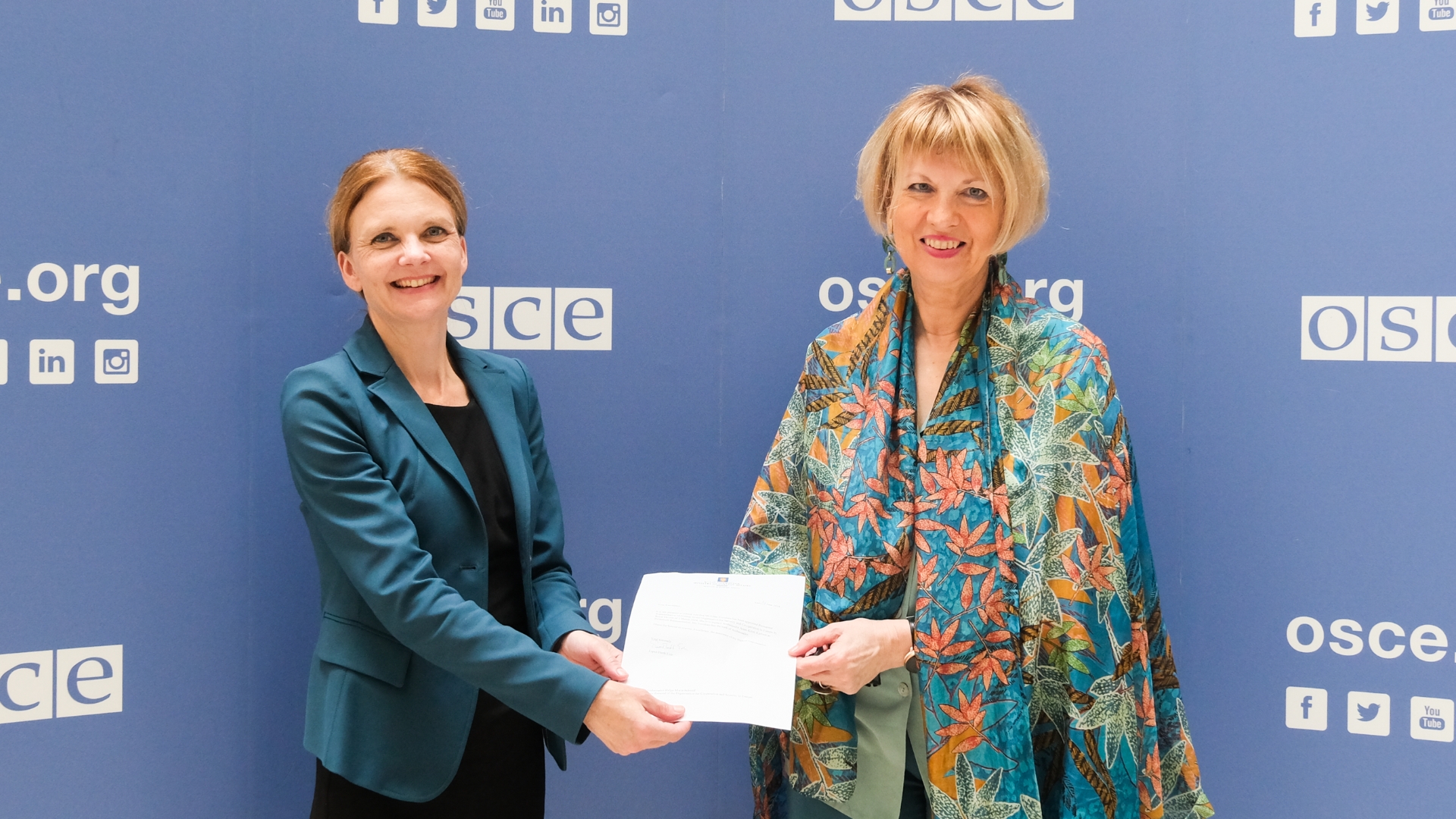 H.E. Ellen Svendsen, Ambassador and Permanent Representative of Norway to the OSCE, with the OSCE Secretary General Helga Maria Schmid, Vienna, 29 August 2024.