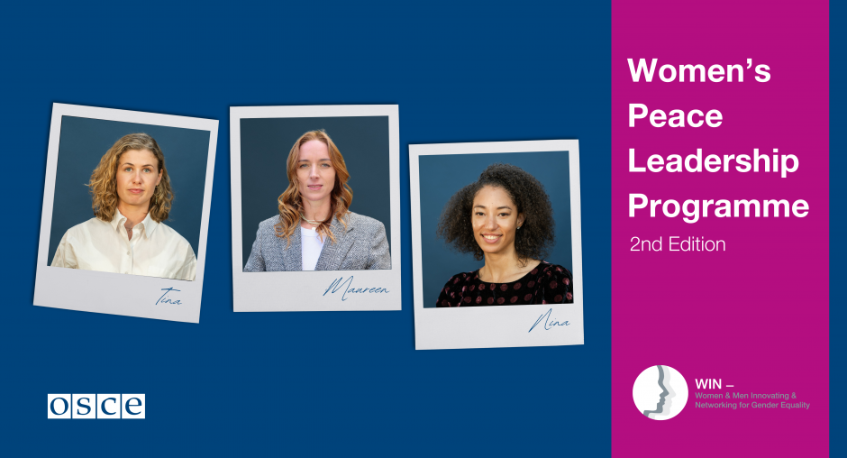 Tina Kurath, Maureen Walschot and Nina Ullom are three of the 16 mentees from around the OSCE region and Afghanistan, participating in the OSCE Women’s Peace Leadership Programme 2023-2024, an initiative of the OSCE Secretary General Helga Maria Schmid. The Programme aims to strengthen the ability of women to meaningfully engage and influence peace processes at all levels. It is a part of the OSCE’s flagship project WIN for Women and Men, which covers the Networking platform for Women Leaders including Peacebuilders and Mediators. The WIN project works with OSCE-supported networks and gives rise to new networks, fostering women’s participation and leadership, as well as broader men’s engagement in achieving gender equality.
