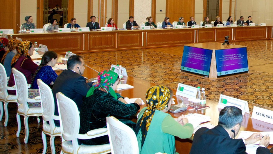 Participants of a two-day regional workshop on advancing the Women, Peace and Security (WPS) agenda and supporting the implementation of United Nations Security Council Resolution (UNSCR) 1325 in Central Asia, with a focus on Turkmenistan, Ashgabat, 27 May 2025.