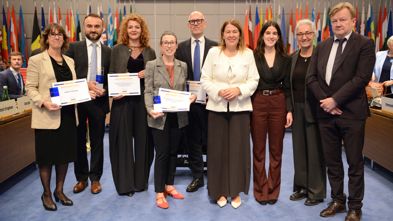 The winners of the sixth Gender Champions Award with the Director of the Office of the Secretary General, Ambassador Hatun Demirer, and OSCE Senior Adviser on Gender Issues, Dr Lara Scarpitta.