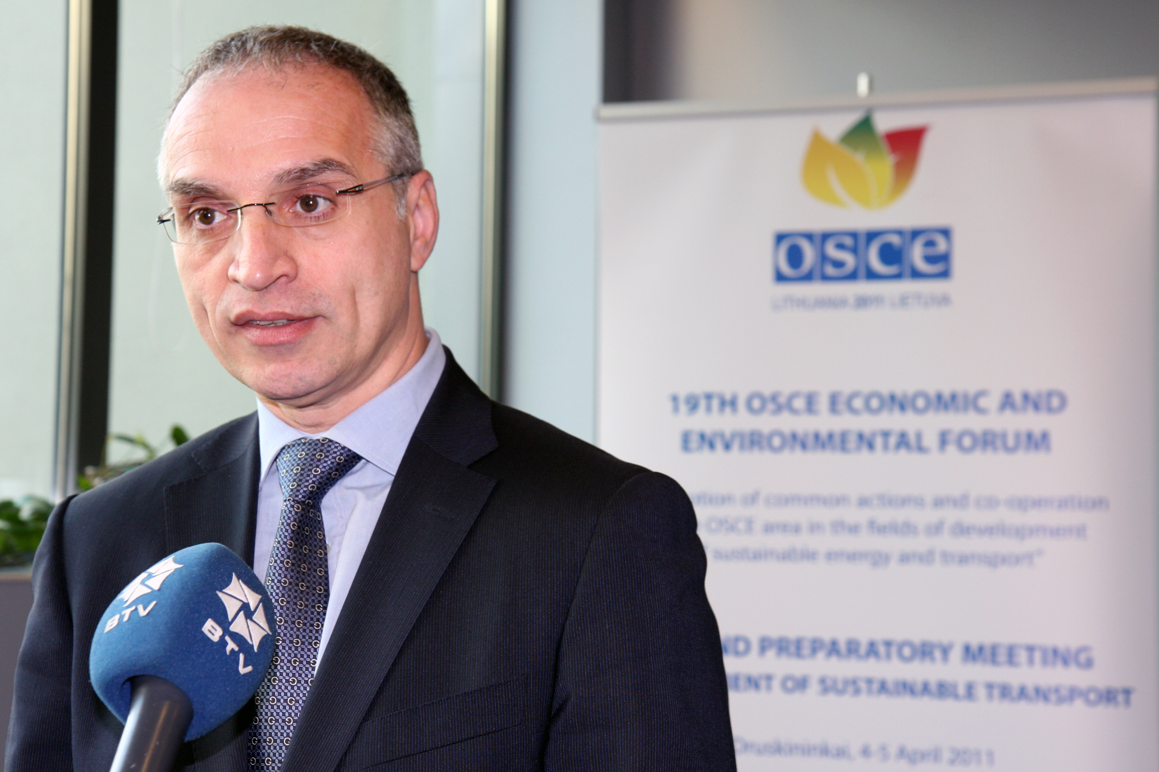 Co-ordinator of OSCE Economic and Environmental Activities Goran Svilanović giving an interview at the Second Preparatory Meeting of the 19th Economic and Environmental Forum, in Druskininkai, Lithuania, 4 April 2011.