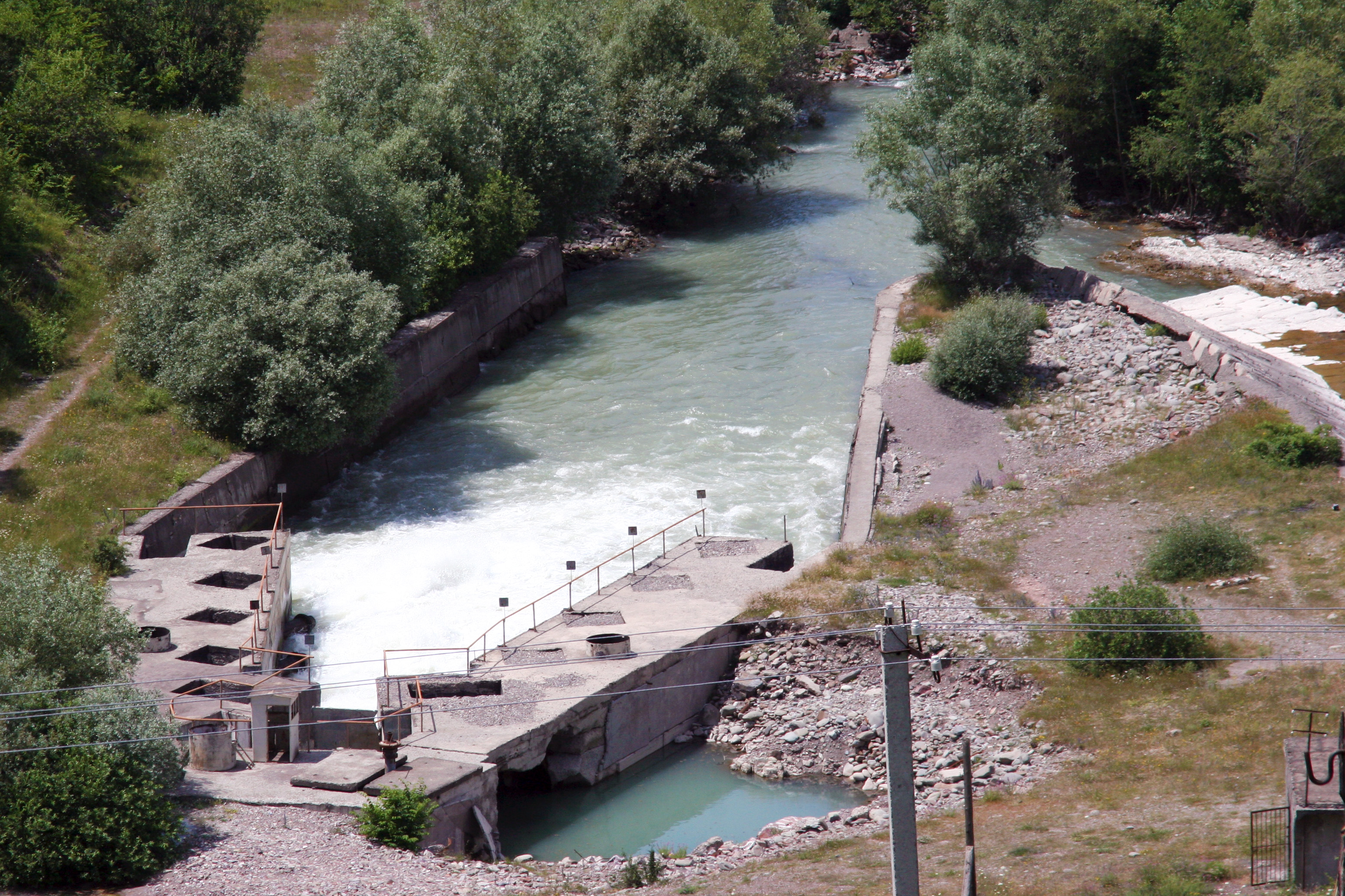 A view of the service outlet of the Zonkari Dam, 12 July 2011. The right wing of the outlet is damaged and requires urgent repairs.