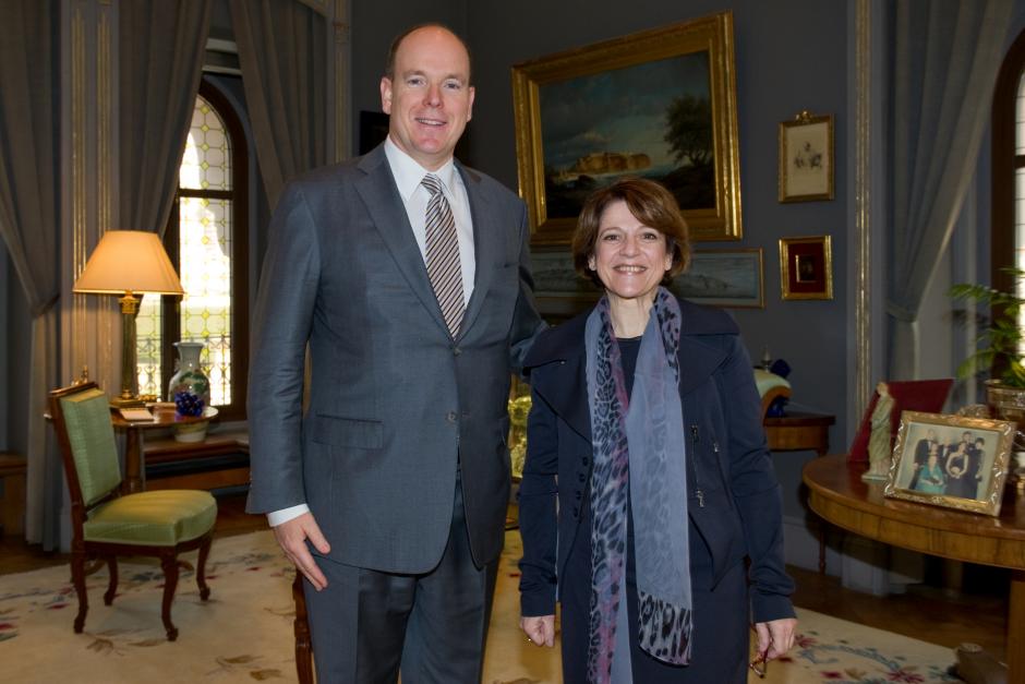 OSCE Special Representative and Co-ordinator for Combating Trafficking in Human Beings, Maria Grazia Giammarinaro, (r) alongside Prince Albert II of Monaco, 20 March 2012.