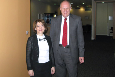 OSCE Special Representative and Co-ordinator for Combating Trafficking in Human Beings, Maria Grazia Giammarinaro (l), poses with UK Immigration Minister Damian Green, London, 28 May 2012.