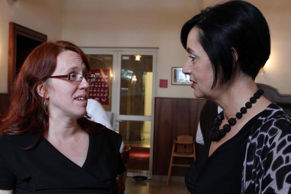 Miroslava Beham (r), OSCE Senior Adviser on Gender Issues, in discussion with Susan Jackson, head of the Arms Production Project at the Stockholm International Peace Research Institute (SIPRI), at a meeting organized by the OSCE Gender Section on the margins of the OSCE Annual Security Review Conference, Vienna, 26 July 2012.