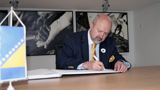 Zannier signing the book of condolences at the Srebrenica - Potocari Memorial.