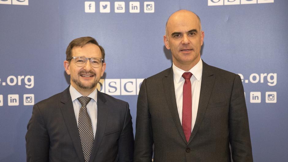 OSCE Secretary General Thomas Greminger (r) meeting Alain Berset, President of Switzerland, Vienna, 8 January 2018.