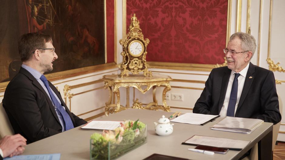 OSCE Secretary General Thomas Greminger (l) meeting with the Austrian President Alexander Van der Bellen, Vienna, 6 March 2018.