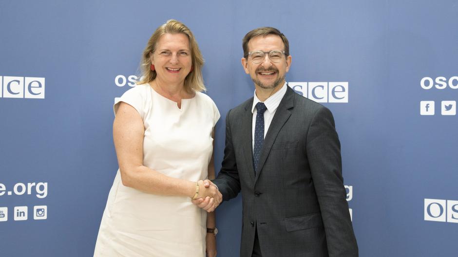 OSCE Secretary General Thomas Greminger (r) and Karin Kneissl, Austrian Foreign Minister, Vienna, 30 July 2018.