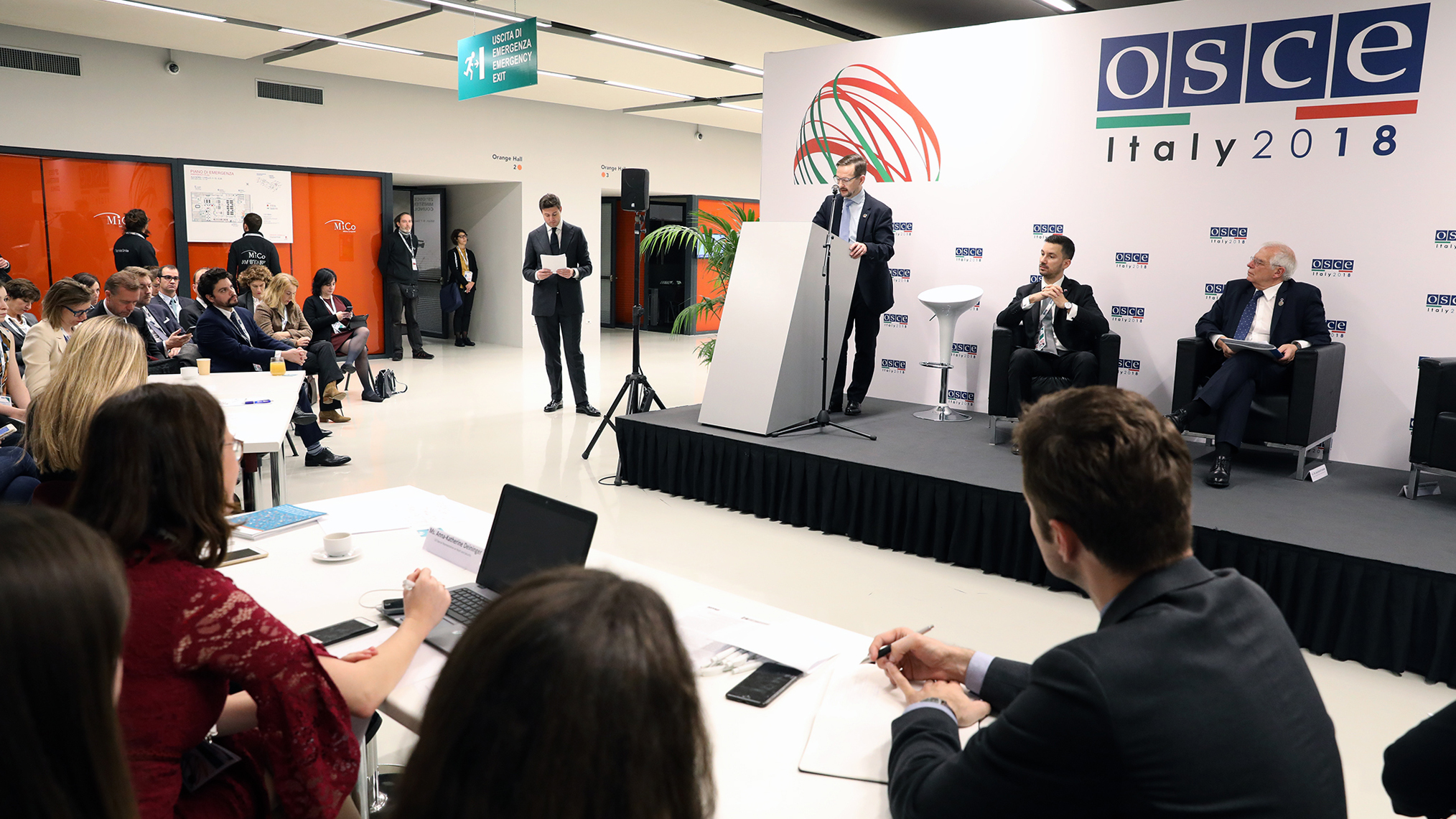 OSCE Secretary General Thomas Greminger speaking at the side event on the role of youth in contributing to peace and security efforts on the margins of the 25th OSCE Ministerial Council, Milan, 7 December 2018.