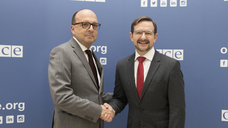 H.E. Ambassador Jorge Eduardo Perestrello Botelheiro Lobo de Mesquita, Permanent Representative of Portugal to the OSCE, with OSCE Secretary General Thomas Greminger, Vienna, 8 January, 2019.