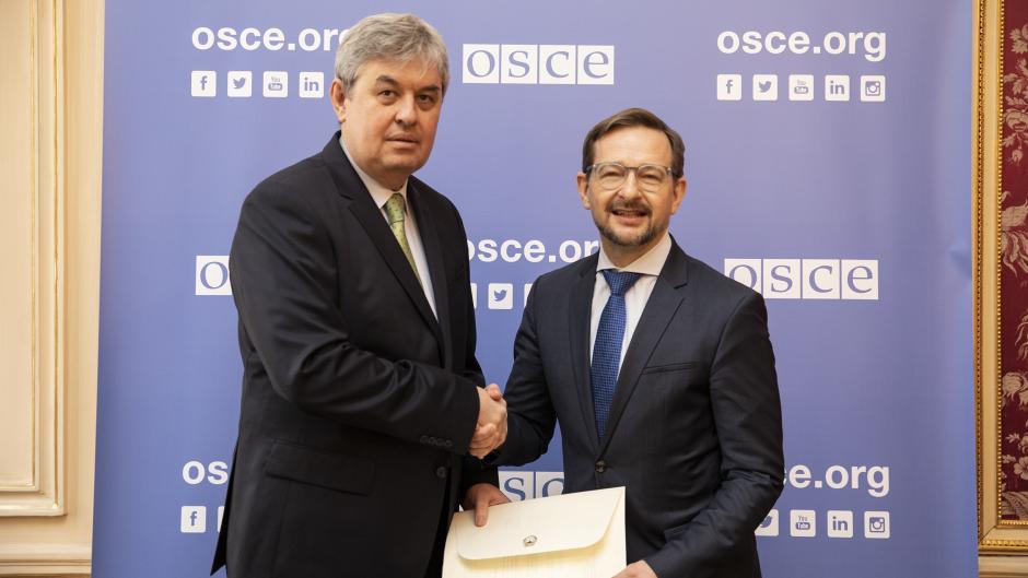 H.E. Igor Djundev, Ambassador and Permanent Representative of the Republic of North Macedonia to the OSCE, with OSCE Secretary General Thomas Greminger, Vienna, 18 February 2019.