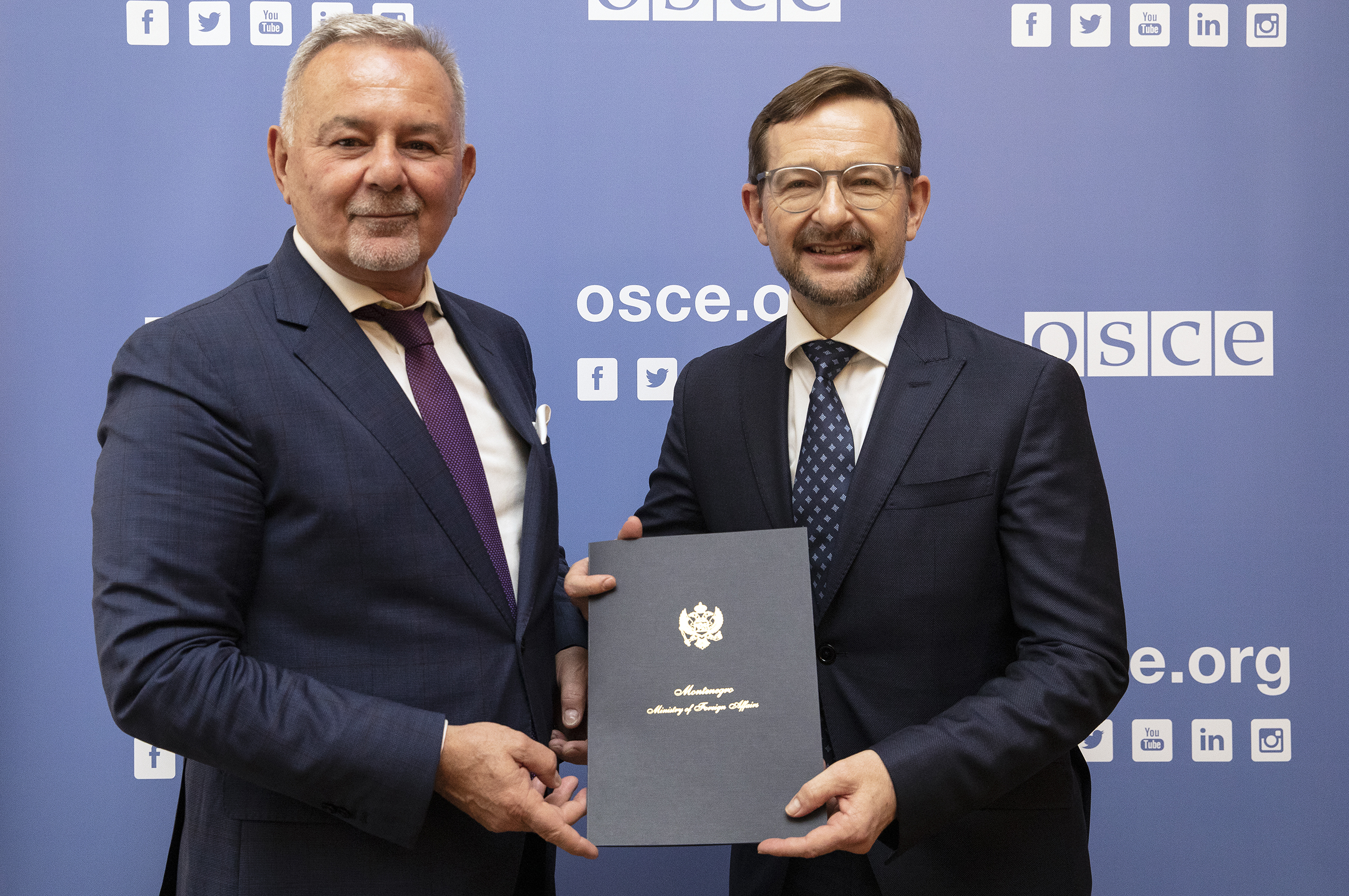 H.E. Veselin Šuković, Ambassador and Permanent Representative of Montenegro to the OSCE, with OSCE Secretary General Thomas Greminger, Vienna, 5 June 2019.