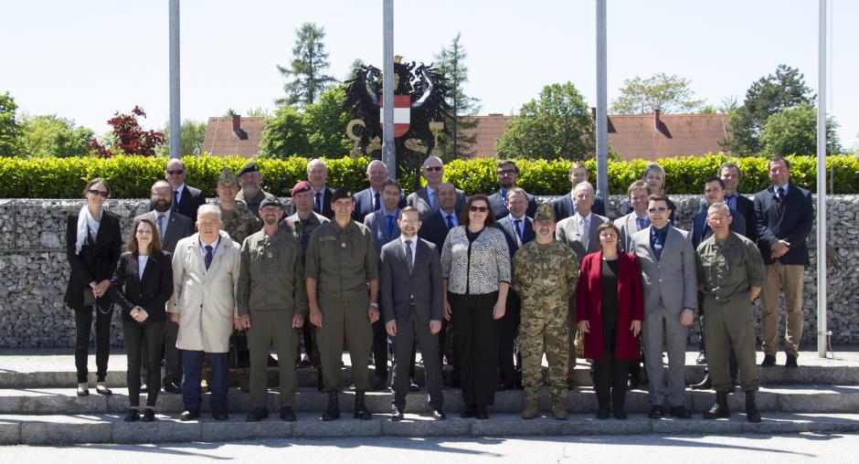 OSCE Secretary General Thomas Greminger and other high-level OSCE officials visited the Austrian Armed Forces International Centre (AUTINT) in Götzendorf, Lower Austria, on 24 May 2019 to mark the fifth anniversary of the Centre’s provision of pre-deployment training for the Special Monitoring Mission to Ukraine (SMM). He was accompanied by the Chief Monitor of the SMM, Ertugrul Apakan, the Deputy Permanent Representative of Slovakia to the OSCE, Ambassador Katarina Zakova, and the current Chief of the Austrian General Staff Directorate, Major General Bruno Hofbauer.