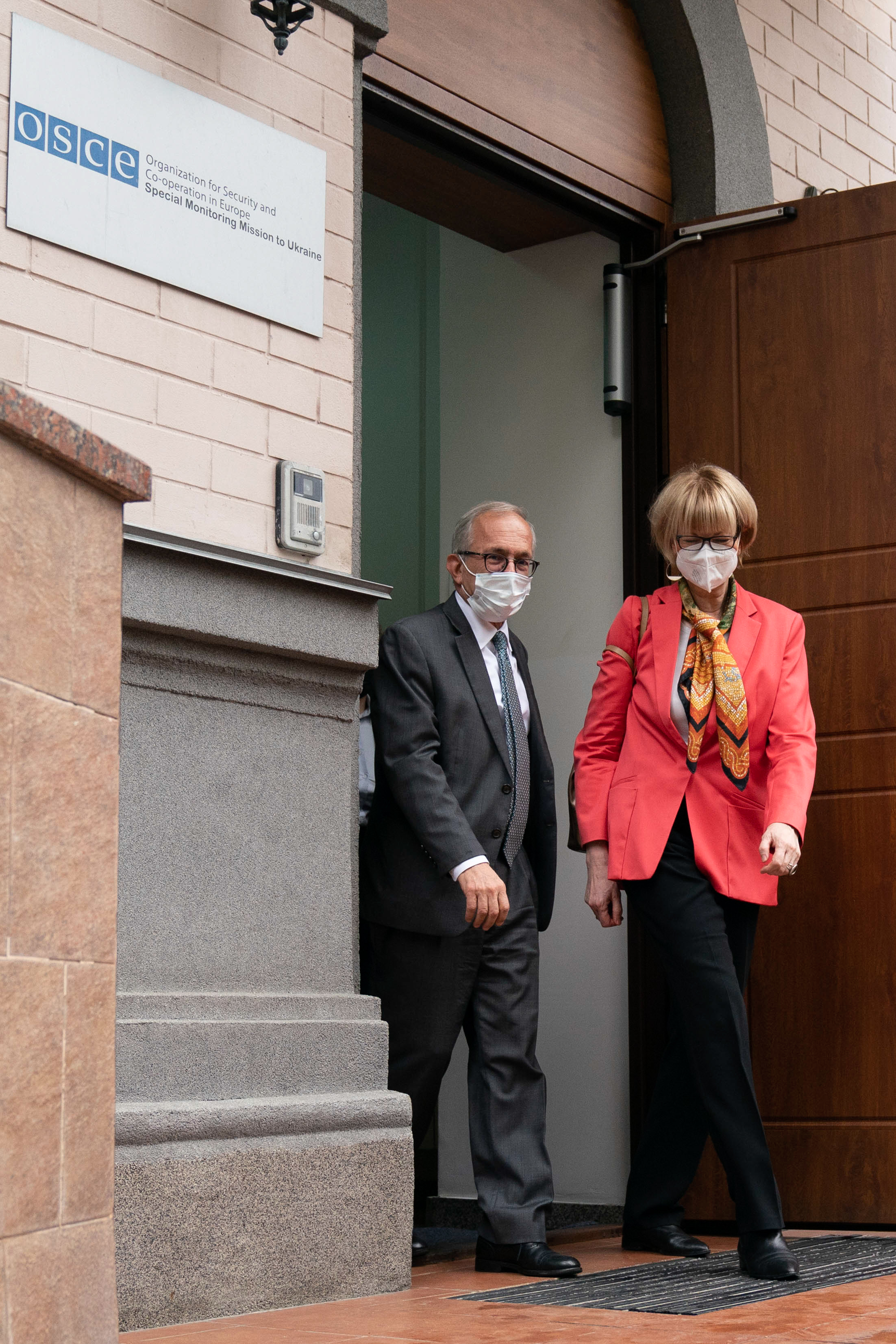 OSCE Secretary General Helga Maria Schmid and Yaşar Halit Çevik, Chief Monitor of the OSCE Special Monitoring Mission to Ukraine, Kyiv, 26 May 2021.