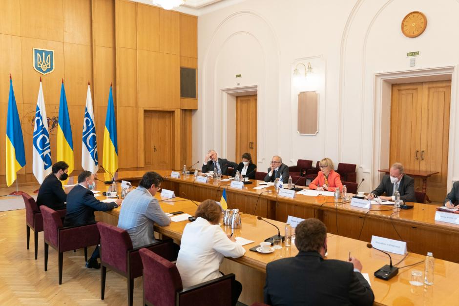 OSCE Secretary General Helga Maria Schmid meeting Dmytro Kuleba, Ukrainian Foreign Minister, Kyiv, 26 May 2021.