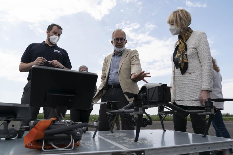 OSCE Secretary General Helga Maria Schmid and Yaşar Halit Çevik, Chief Monitor of the OSCE Special Monitoring Mission to Ukraine, talking with the operator of a mid-range UAV
