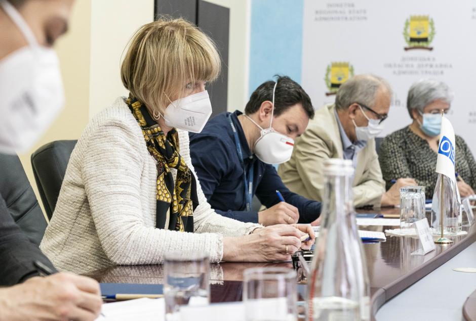 OSCE Secretary General Helga Maria Schmid during her meeting with Pavlo Kyrylenko, Head of the Donetsk Regional State Administration, Donetsk, 29 May 2021