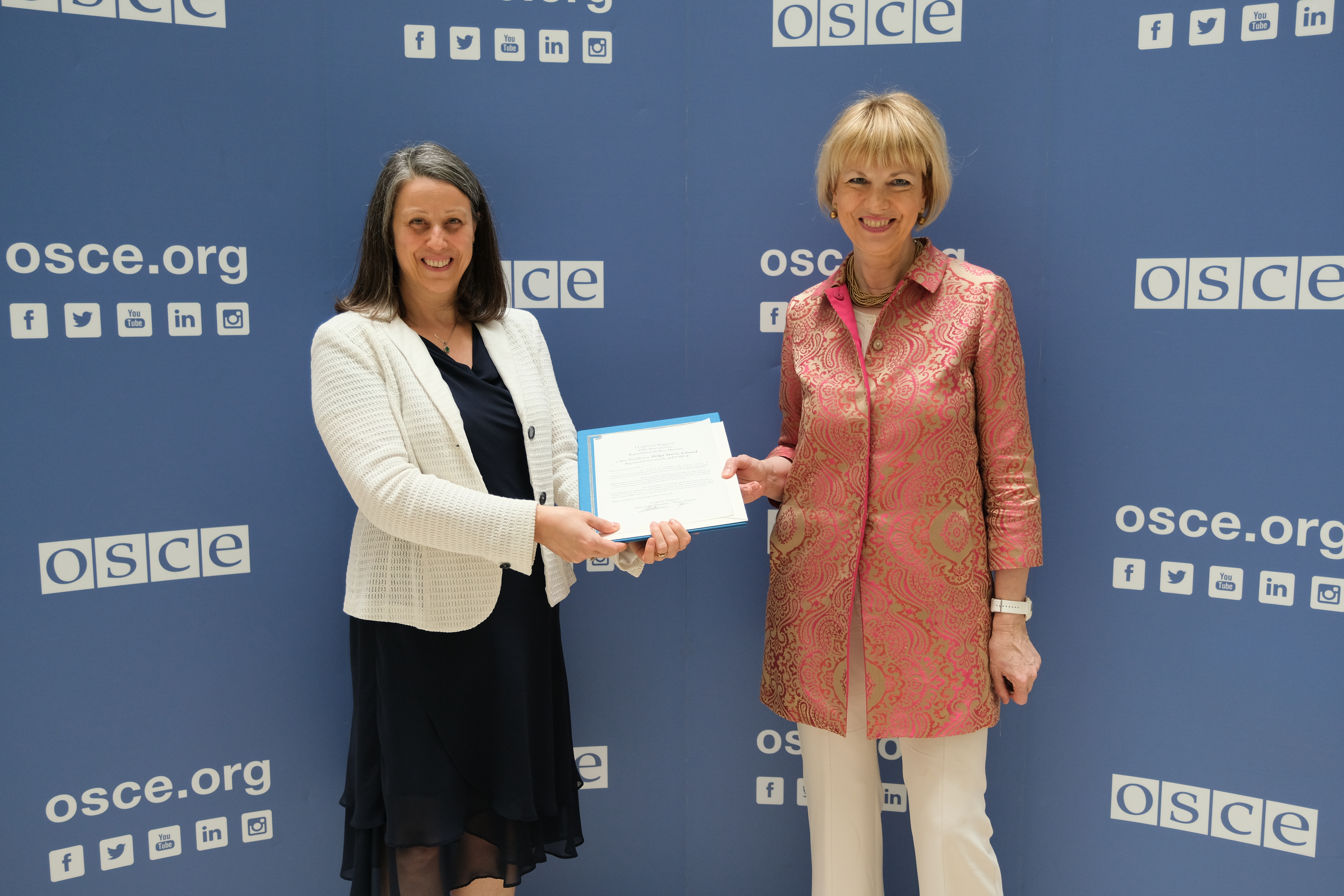 H.E. Molaroni, Ambassador of Republic of San Marino to the OSCE, with OSCE Secretary General Helga Maria Schmid, Vienna, 7 September 2021.
