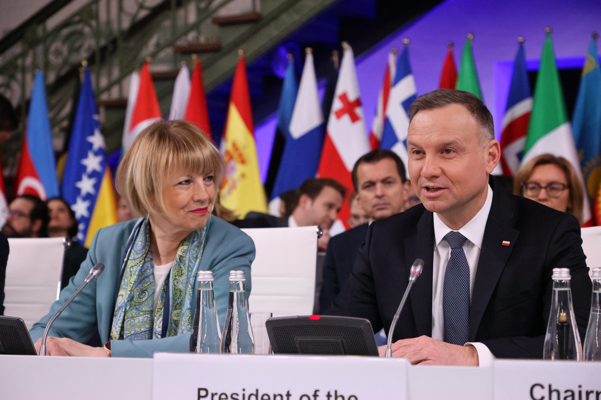 OSCE Secretary General Helga Maria Schmid and President of Poland Andrzej Duda at the plenary session of the 2022 OSCE Ministerial Council, Łódź, 1 December 2022.