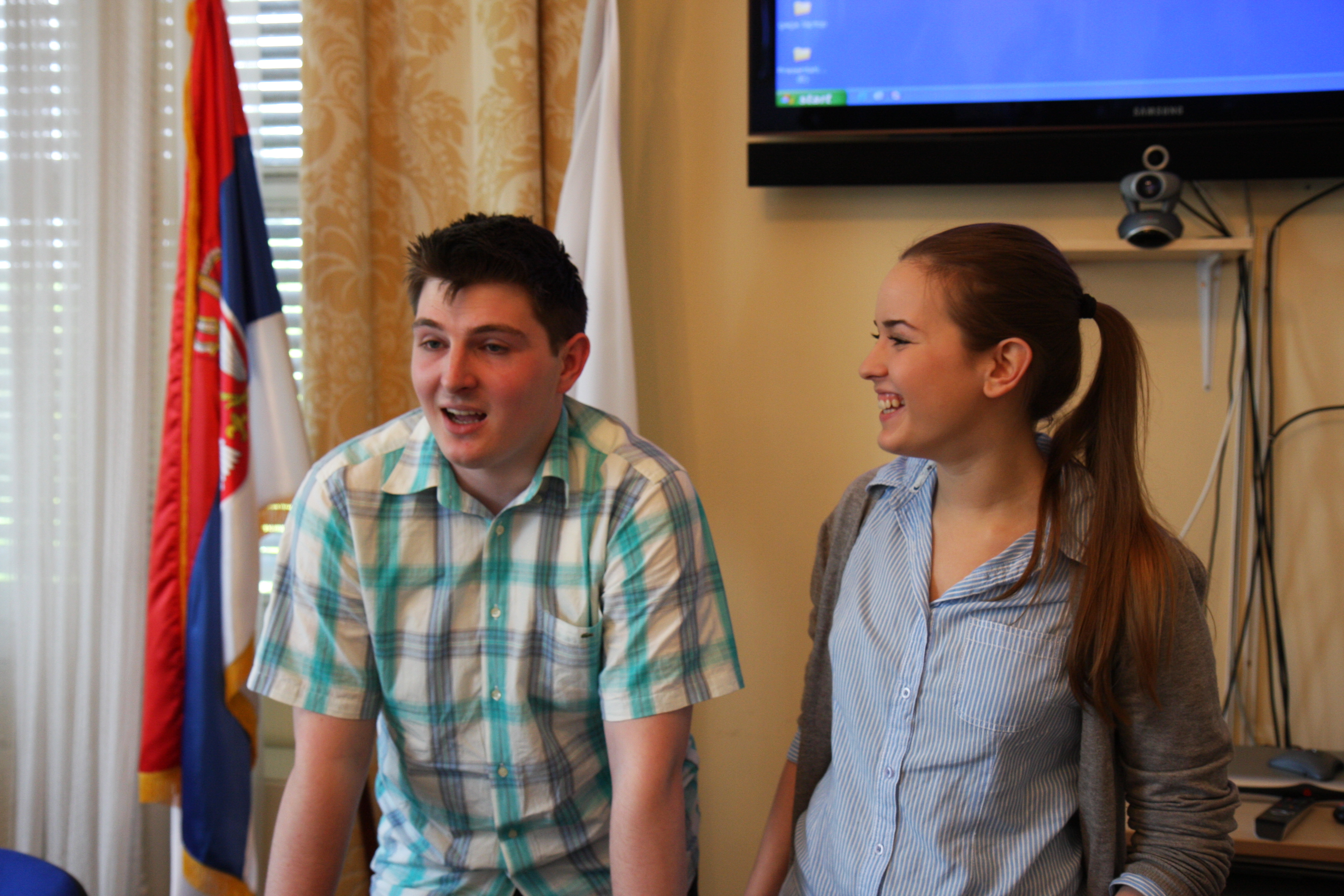 Law students Nenad Kovacevic (left) and Marija Scekic (right), the two best students in the OSCE-supported University of Belgrade course on minority rights, are awarded a study trip to Galway, Ireland, 7 May 2009.