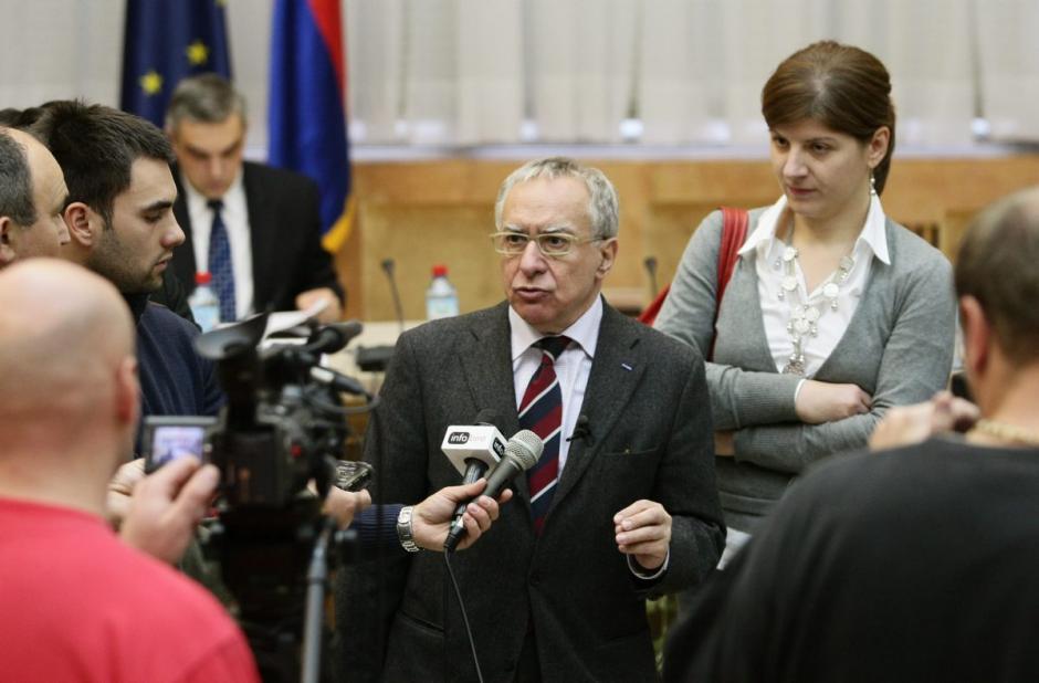 Dimitrios Kypreos, Head of the OSCE Mission to Serbia, speaking to journalists at a meeting on the forthcoming national minority councils election, Belgrade, 30 October 2009.