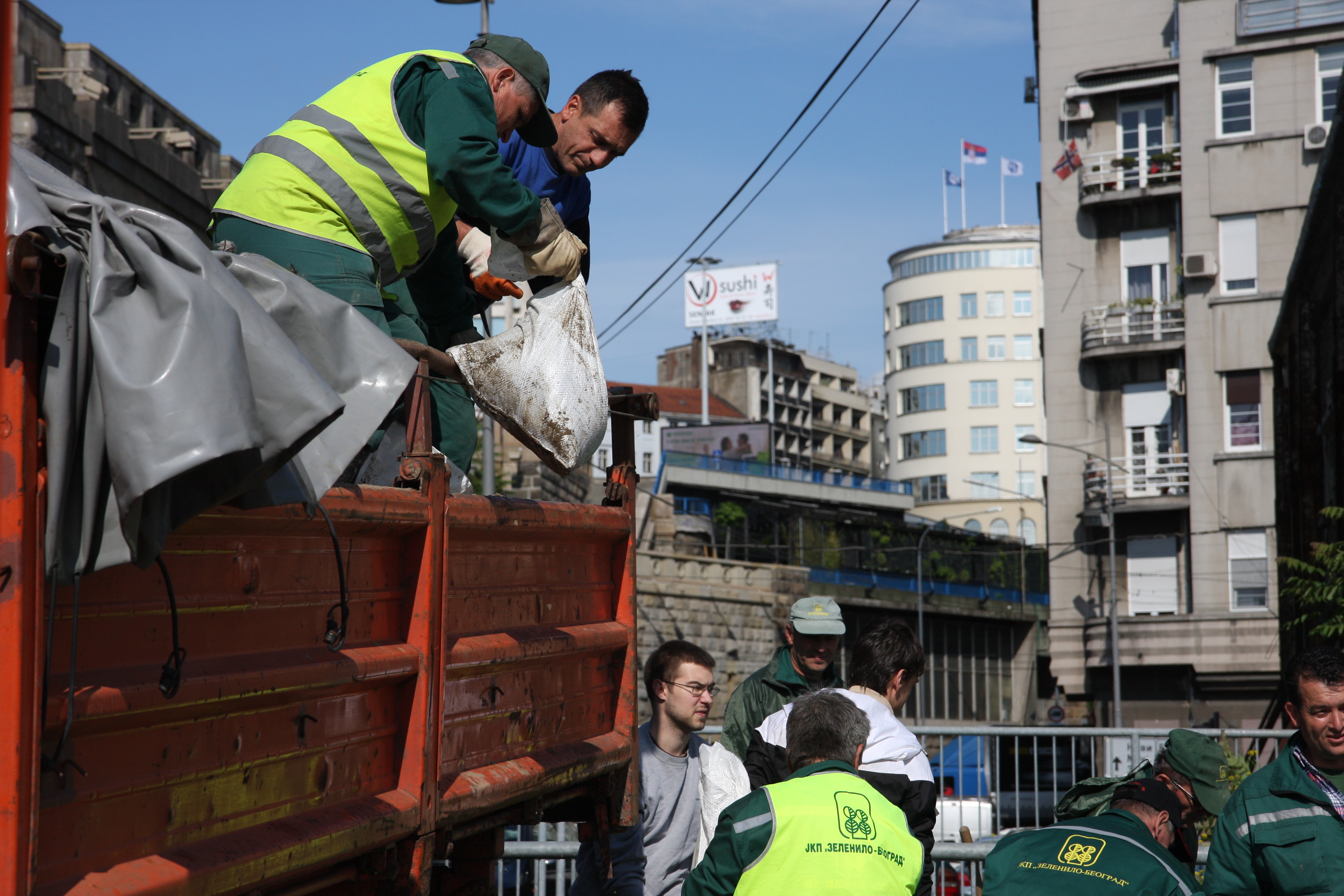 The Belgrade municipal services deliver anti-flood sacks to protect the city of Belgrade from expected floods, 17 May 2014.