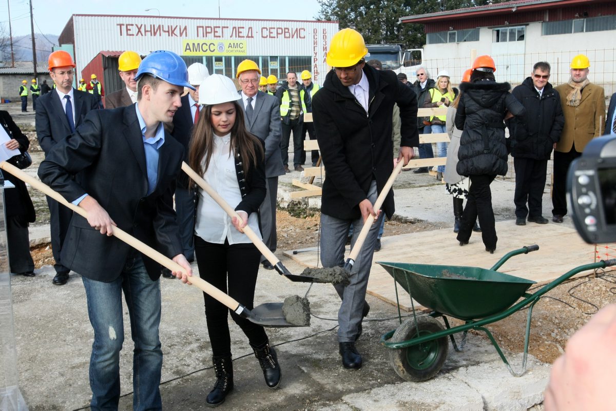 Students of the Subotica Faculty of Economics of the Novi Sad University laying the foundations for the construction of premises of the University's Bujanovac Department, Bujanovac, 3 February 2015.