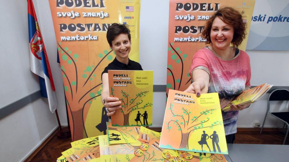 Mentees are matched with mentors according to the mentees’ needs, say Svetlana Stefanović (r) and Dina Rakin of the European Movement in Serbia as they present their handbook for mentors and mentees.