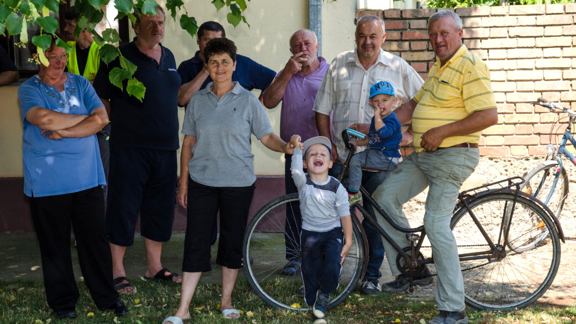 Passers-by observe the delivery of building material to their neighbours, Nikinici, 27 June 2015.