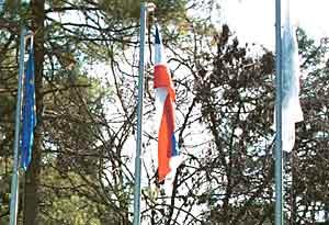 Council of Europe (left ) and OSCE (right) flags are raised during