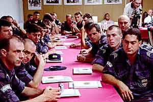 Participants of the multi-ethnic police training in southern Serbia, organized jointly by the Serbian Interior Ministry and the OSCE, July 2001.