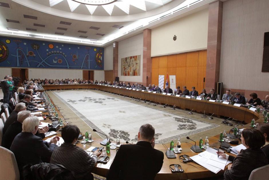 Representatives of Serbia’s Justice Ministry and the Supreme Court of Cassation discuss the constitutional reform process at the conference organized by the Supreme Court of Cassation, the OSCE Mission to Serbia and the Council of Europe, Belgrade, 29 November 2016