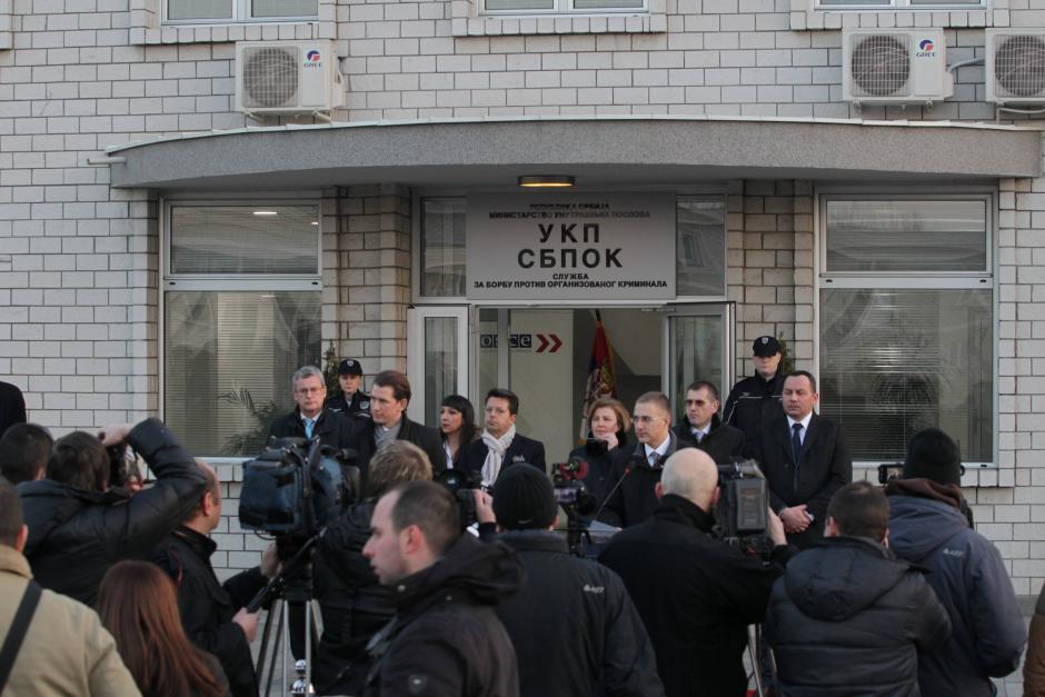 OSCE Chairperson-in-Office and Austrian Foreign Minister Sebastian Kurz, delivers to the Task Force on Combating Human Smuggling vehicles and equipment, donated by the OSCE Mission, Belgrade, 13 February 2017.