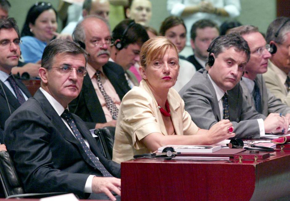 President of Serbia and Montenegro, Svetozar Marovic (left), Belgrade Mayor Radmila Hrustanovic and OSCE Mission Head Maurizio Massari at a regional conference on inter-ethnic tolerance in Belgrade, 6 July 2004.
