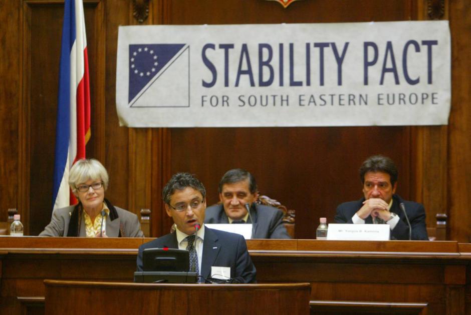 Maurizio Massari, Head of OSCE Mission to Serbia and Montenegro, addresses a regional conference on the role of the Ombudsman in South-Eastern Europe in enhancing regional co-operation, Belgrade, 28 September 2004.