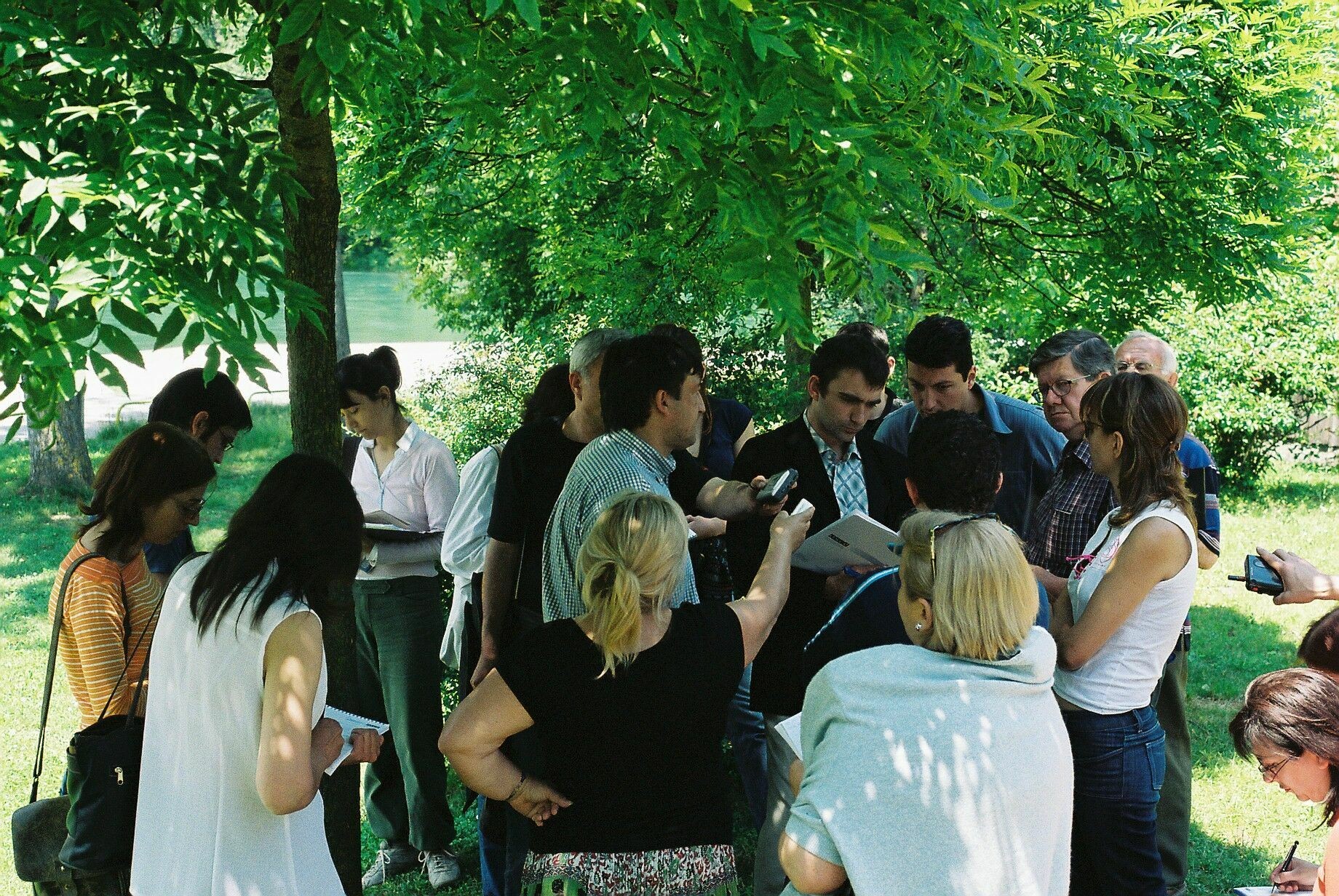 Nearly 20 journalists from Serbia and Montenegro participated in an OSCE-sponsored workshop on environmental reporting, 13 June 2005. Here, they interview the President of the Association of Fisherman from Bajina Basta.