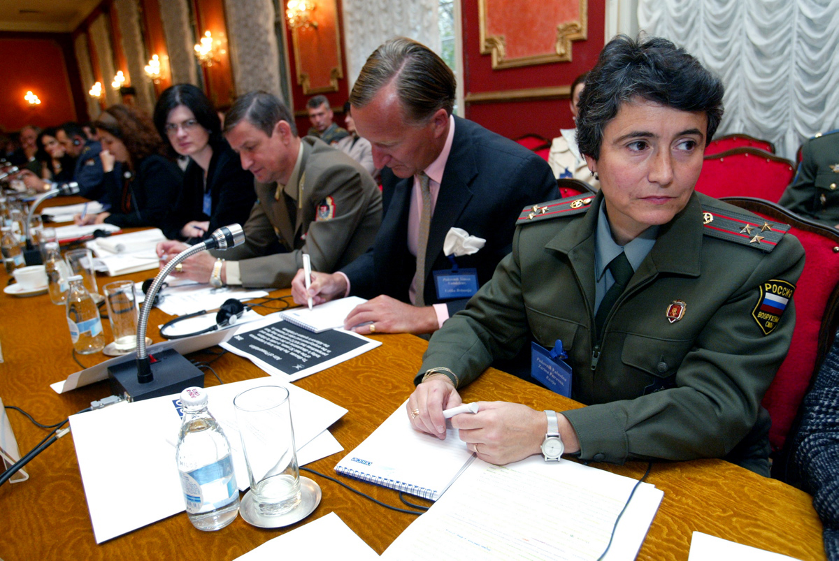 Participants discuss the role of women in military institutions at an international conference co-organized by the OSCE and the Serbian Defence Ministry, Belgrade, 5 October 2006.