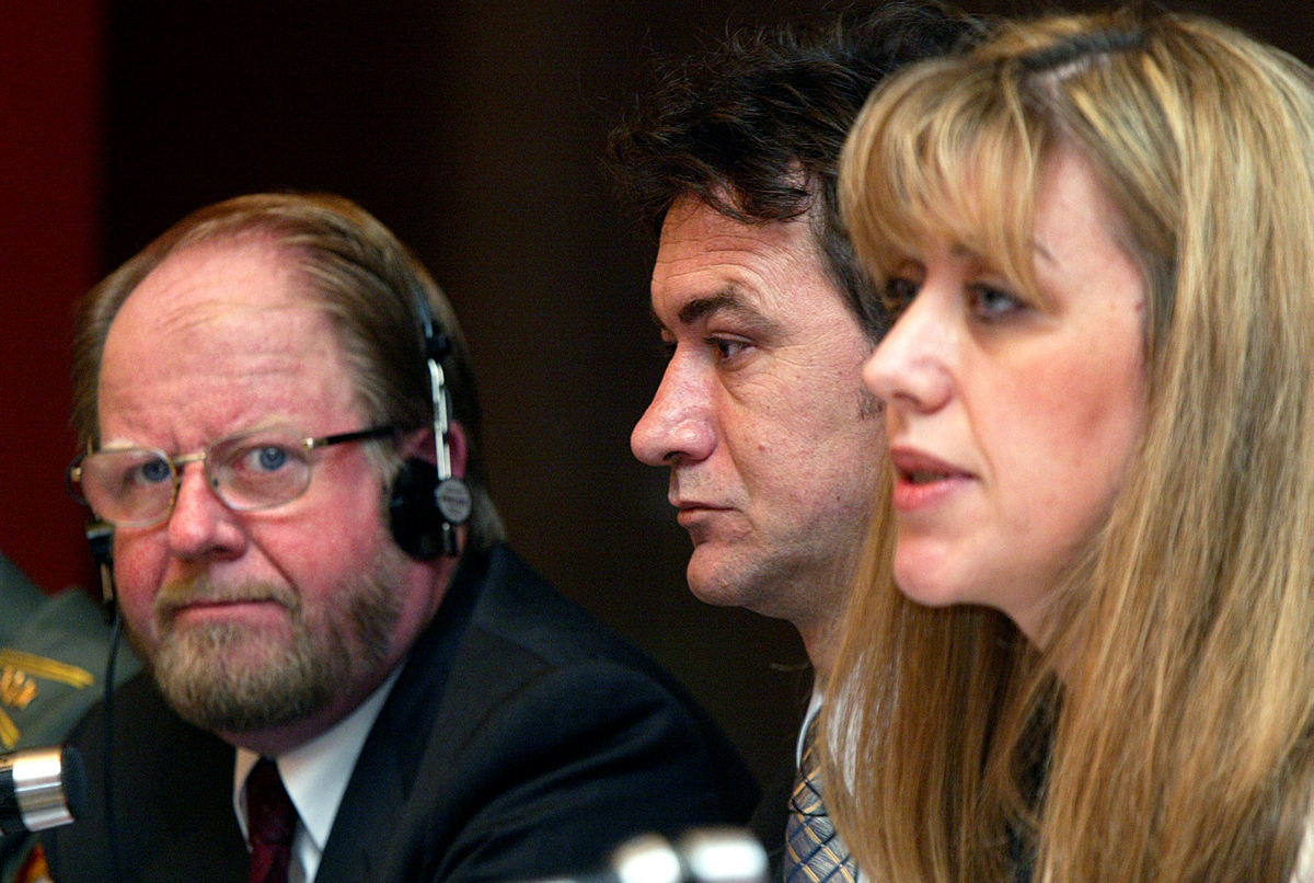 Head of Mission Ambassador Hans Ola Urstad (left), State Secretary of the Serbian Defence Ministry Zvonko Obradovic (centre) and his aide Snezana Markovic-Samardzic at a conference on women's participation in the army, Belgrade, 4 October 2006.