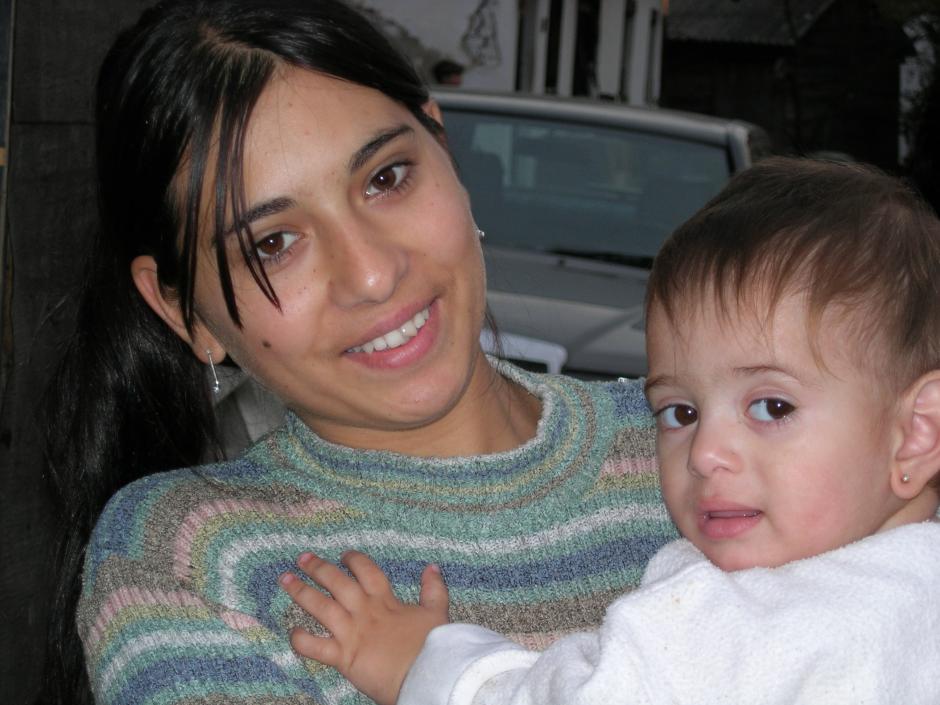 A young mother holds her tiny two-year old child at a Roma settlement in western Serbia, 22 November 2006. Roma women often wed very young, lacking financial opportunities to support themselves.