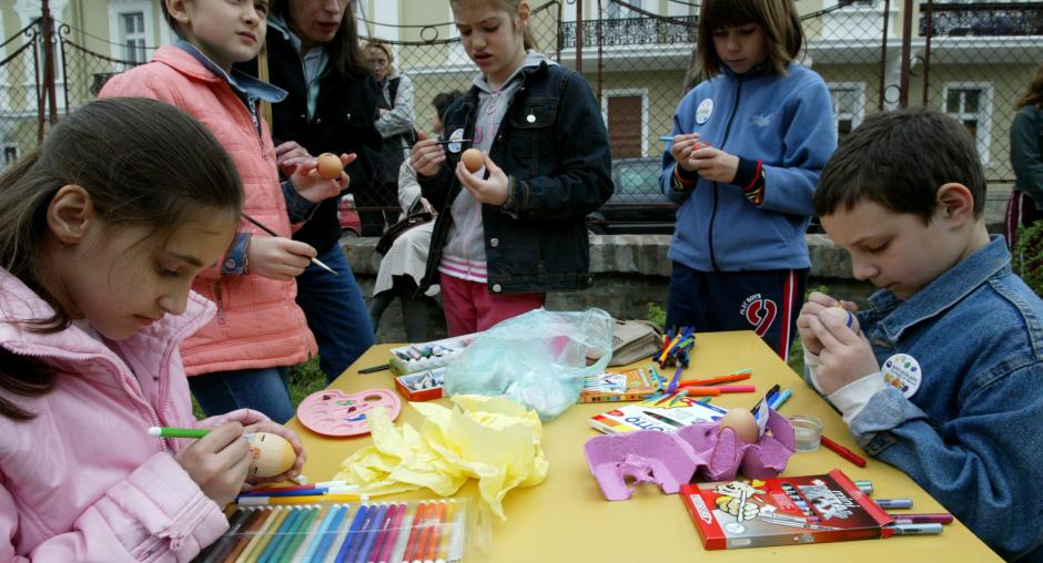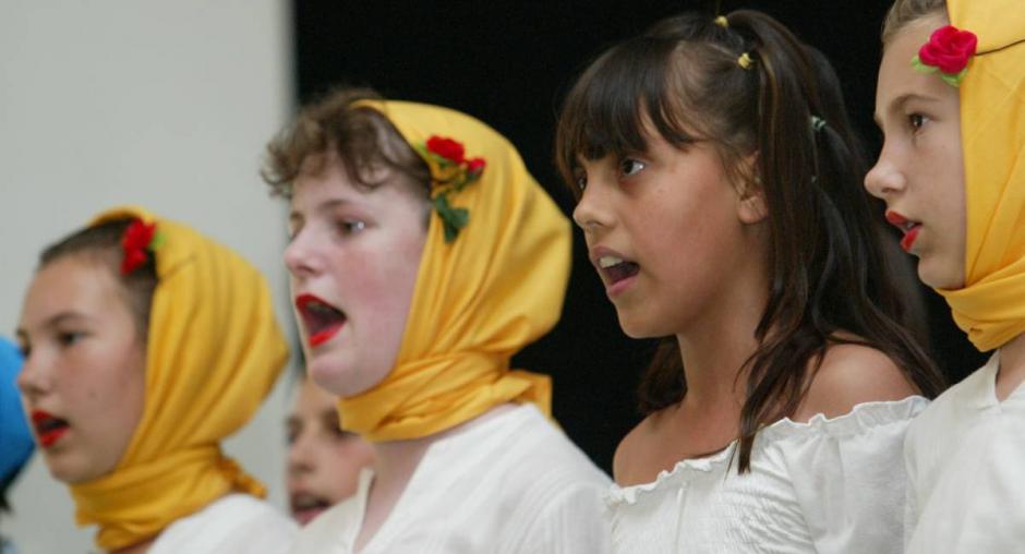 Children at an elementary school in Silbas, Vojvodina, sing at a "school day" ceremony, 25 May 2007. The OSCE Mission to Serbia is helping to provide textbooks on subjects such as literature, math, music and English for 50 Roma students. (OSCE/Milan Obradovic)
