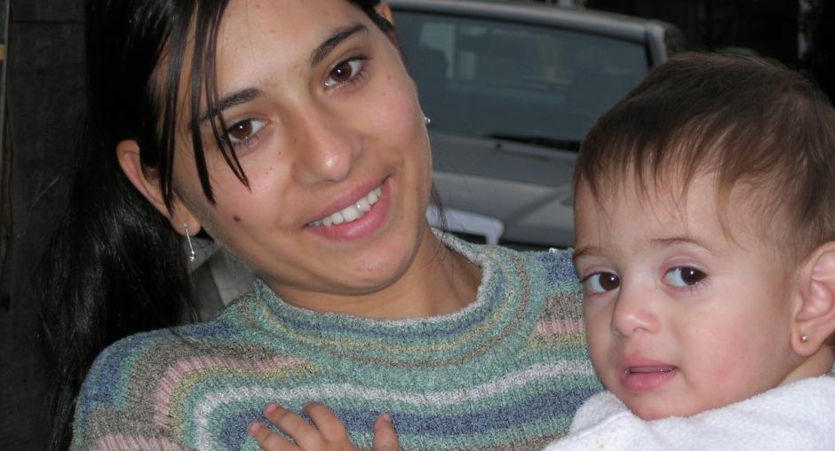 A young mother holds her tiny two-year old child at a Roma settlement in western Serbia, 22 November 2006. Roma women often wed very young, lacking financial opportunities to support themselves. (OSCE/Zorica Mrsevic)