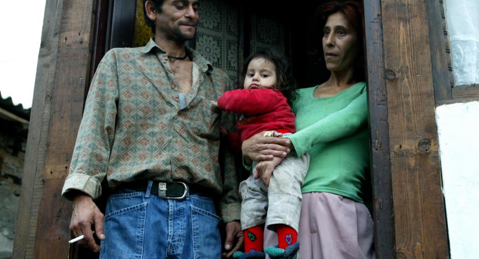 A family at one of Valjevo's Roma settlements in Western Serbia, 22 November 2006. Roma are often forced to live in poor, unhygienic conditions in Serbia's informal settlements. (OSCE/Milan Obradovic)