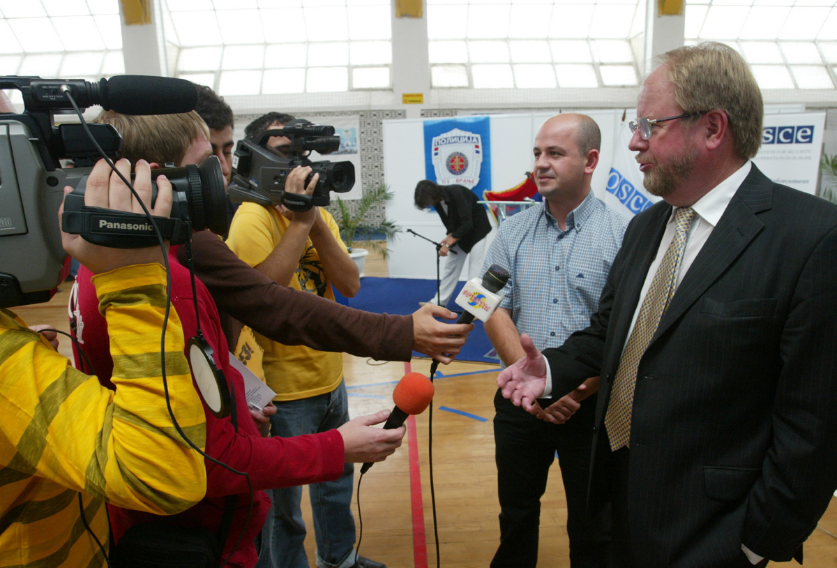The Head of the OSCE Mission to Serbia, Ambassador Hans Ola Urstad, speaks to the media in Bujanovac following an OSCE event, 22 September 2006.